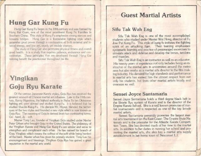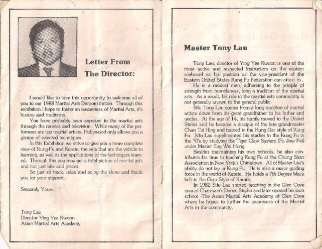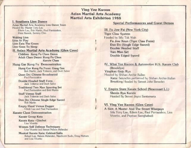Ying Yee Kwoon Martial Arts Exhibition Program: