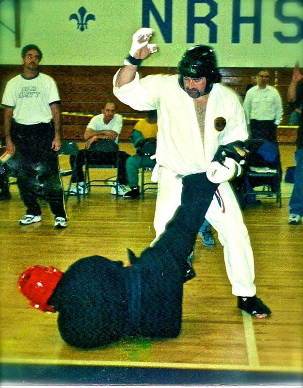Sensei Benedict's active participation in tournaments has spanned almost three decades. Part of an exclusive network of Goju competitors and supporters, he has competed in several tournaments in New York and in other states, as well as in Canada--for example, those sponsored by Hanshi Yogi Israel in Ontario in the late 1980's. Working the tournament circuit most fervently in the early to mid-1990s, Sensei Benedict achieved considerable success in various competitions six years before his accident and four years after. From 2002 to 2005, he competed in the 12th to 15th Al Gotay All Goju-Ryu Invitational tournaments in New York City and consistently earned first place in the heavyweight black belt division. Well known for breaking (two-by-fours, baseball bats, cinder blocks, bricks, rocks, etc.), Sensei Benedict's passion for tournament fighting is also evident in his students who, in large numbers, accompany him and compete as well. He has also sponsored and promoted his own tournaments, including one in 1996 in Patchogue, New York, and another in Holbrook, New York.